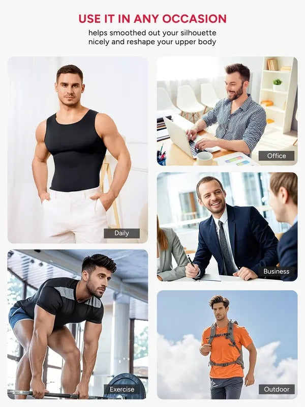 Elevate Your Style with Nebility Shapewear! 🏋️♂️·High Stretch Tummy Shaper: This men's compression vest offers exceptional elasticity, ensuring a comfortable fit. The blend of 60% nylon and 40% spandex provides a soft, silky texture. Ideal for enhancing your athletic appearance, it's perfect for various settings like office, gym, dates, and dinners.