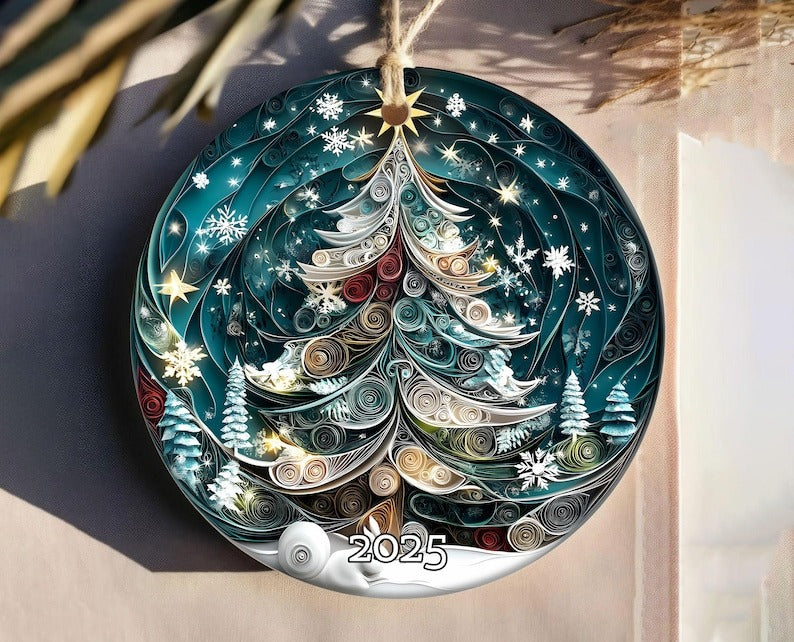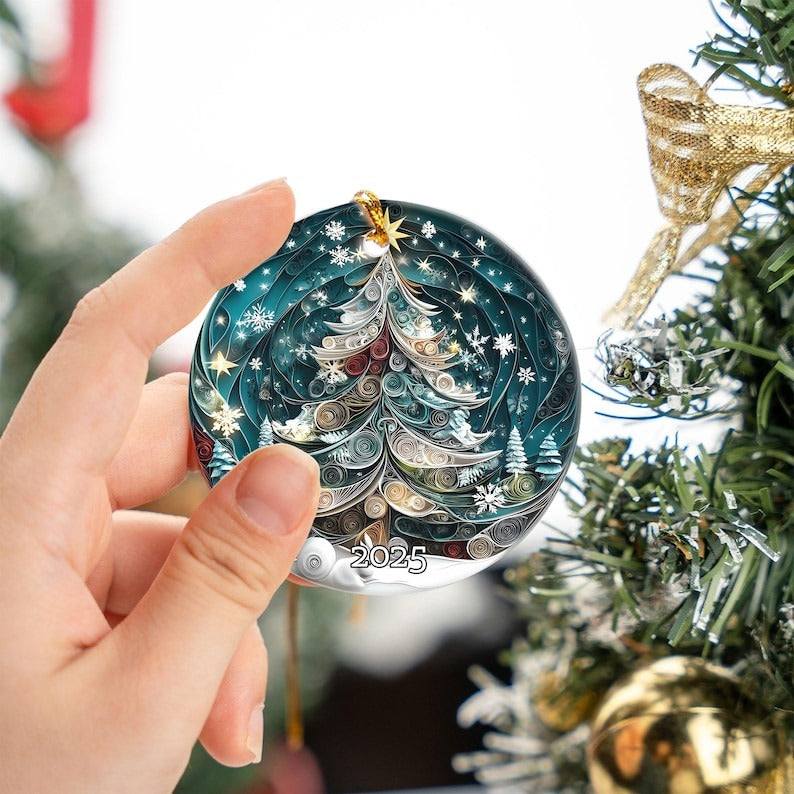 Christmas Tree 2025 Ornament, 3D Effect Ornament