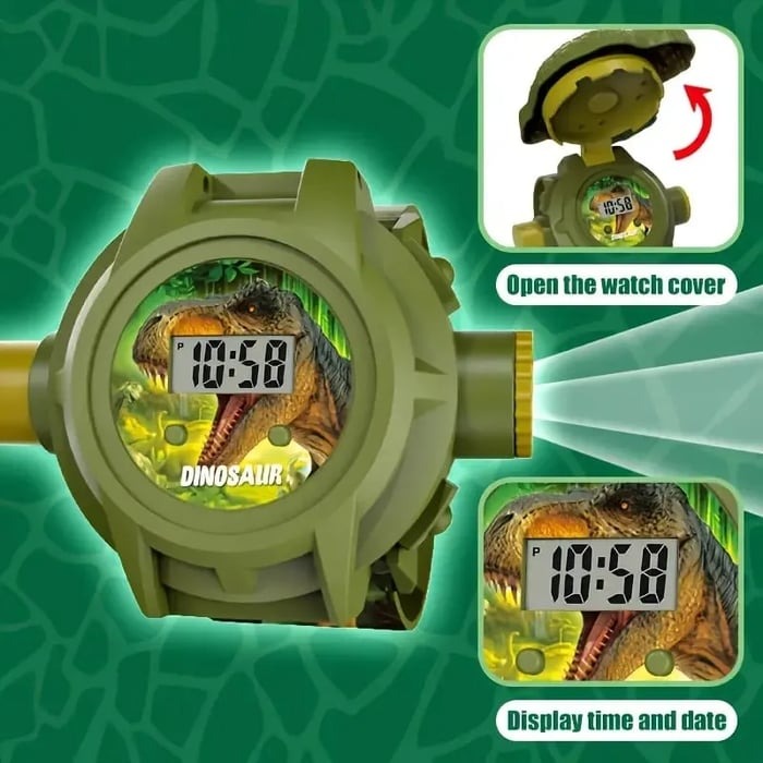 Children's projection Watch: our watch can project 24 different dinosaur patterns, with adjustable projection definition and display time and date