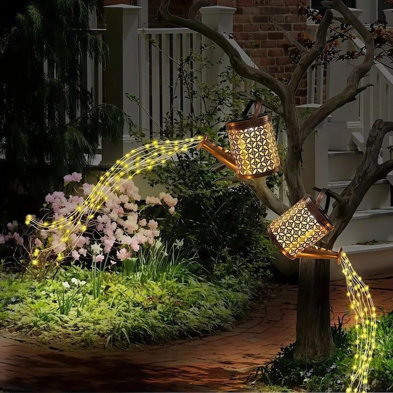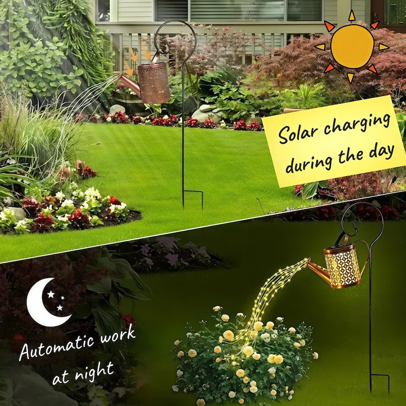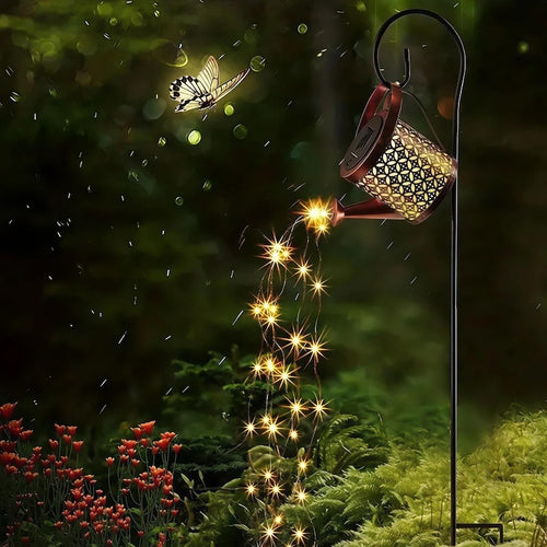 Add a whimsical glow to your outdoor space with this beautiful solar watering can lantern that “pours” a stream of golden fairy lights into your garden. Perfect for creating an enchanting atmosphere in any outdoor setting, from patios to flower beds.