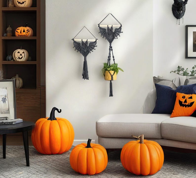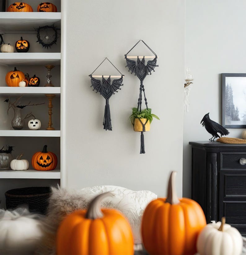 🎃Bring a touch of eerie elegance to your space with our Halloween Macrame Ghost and Gothic Bat Decor . This handcrafted wall hanging adds a whimsical yet spooky vibe to any room, perfect for your gothic office or Halloween festivities. Featuring intricate macrame details, it's an ideal decoration for those who love witchy goth style and dark academia. Elevate your spooky season decor with this charming ghostly addition to your home.🦇