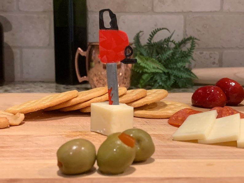 🧀These Halloween themed cheese/cocktail picks are perfect for charcuterie boards and cheese boards. They're guaranteed to make your Halloween party a bloody good time! Each pack of 20 food picks includes an assortment of slasher movie inspired "murder weapons" designed to compliment your party's Halloween decor and take your appetizers to the next level!