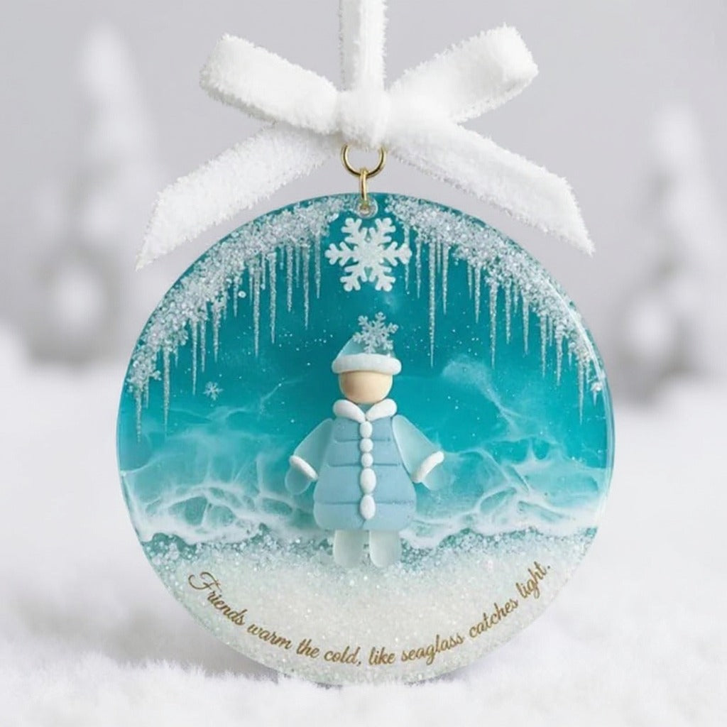 🌟Capture the timeless beauty of your friendship with a keepsake that's as unique and special as your bond. It's a celebration of shared laughter, unforgettable moments, and the friend who feels like family. The serene, sea-glass inspired design brings a calming, coastal touch to any Christmas tree, making it a treasured reminder of your connection year after year.
