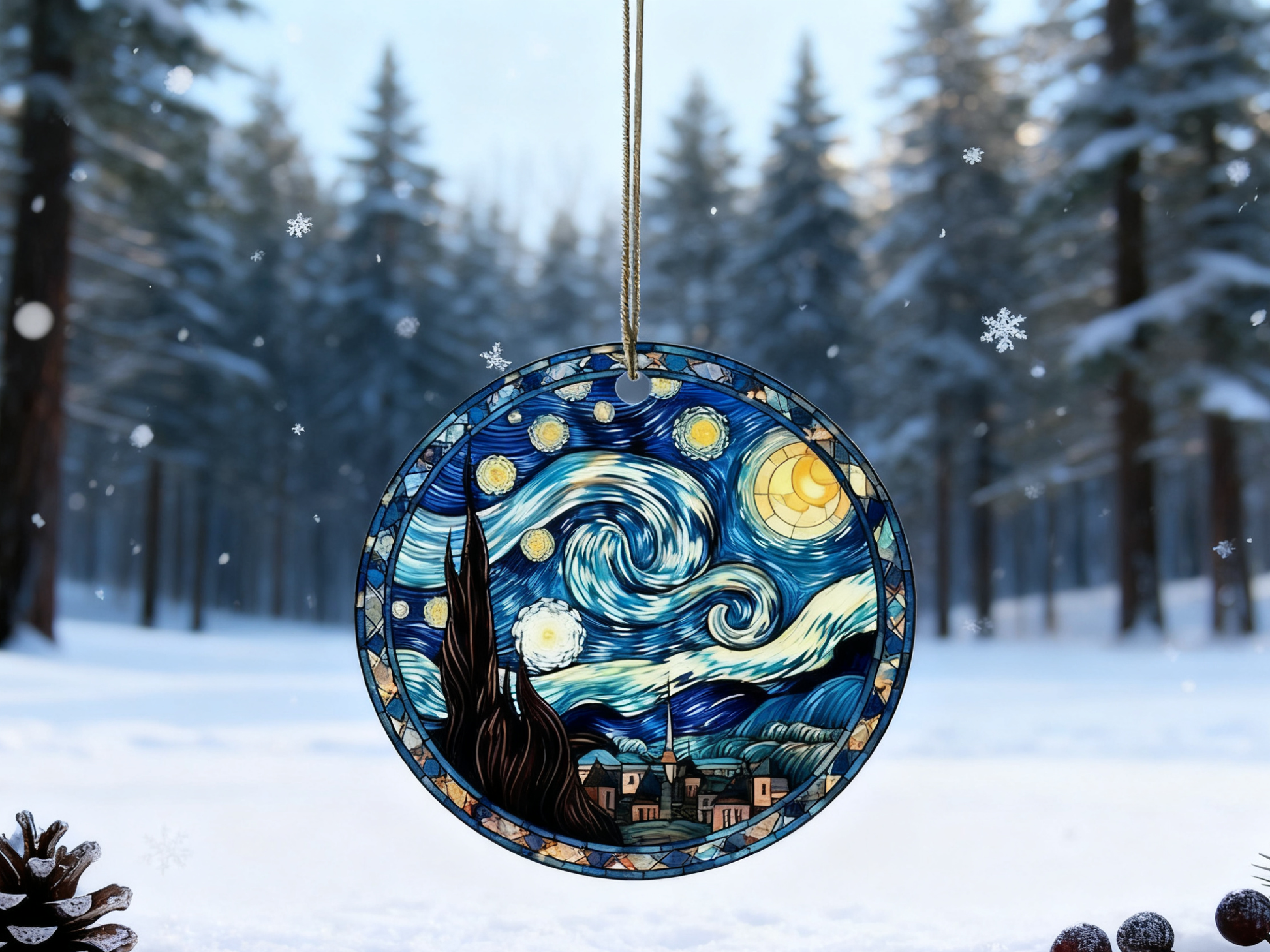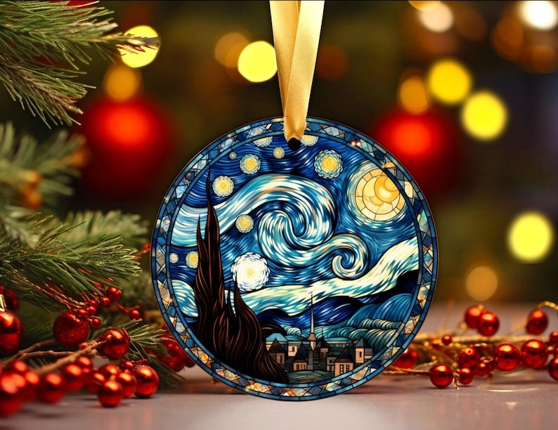 Stained Glass Starry Night Ornament, Van Gogh Keepsaket