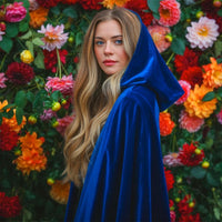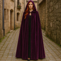 Step into a world of mystique and moonlight with our Unisex Velvet Hooded Cloak with Full-Length Cape — a timeless piece designed to captivate. Crafted from luxurious velvet in a range of enchanting colors (Black, Red, Blue, Purple, Gray, and Green), this cloak is your perfect companion for Halloween, cosplay events, Renaissance fairs, or fantasy photoshoots.